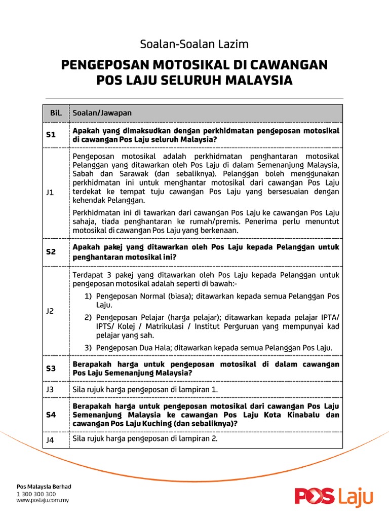 Faq Poslaju Motosikal Bm Final Pdf